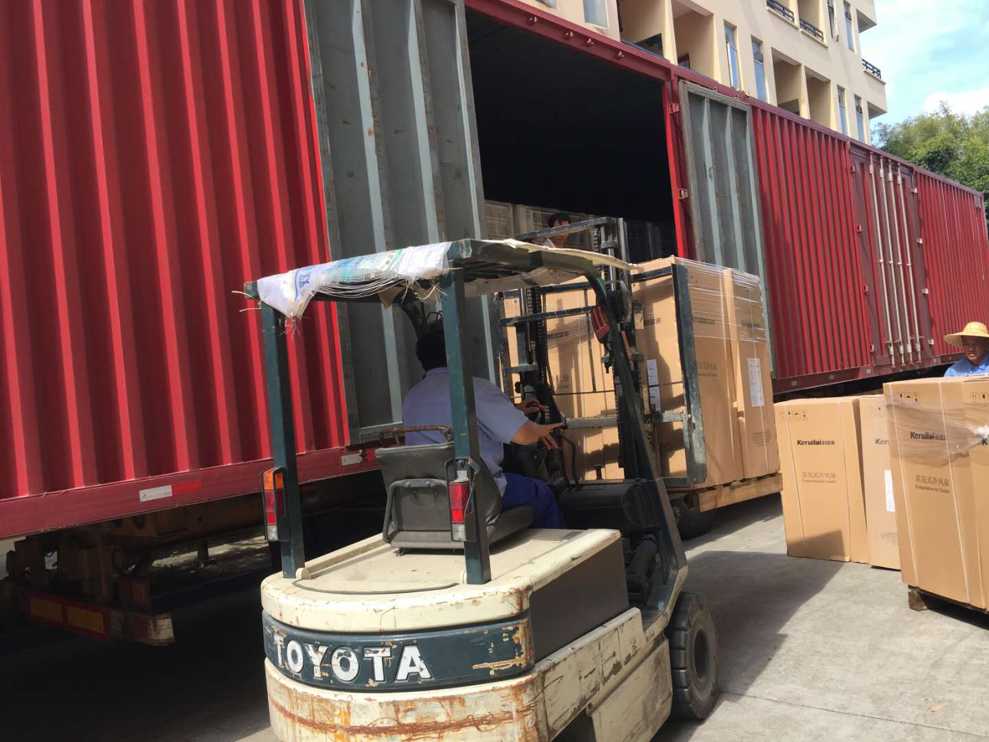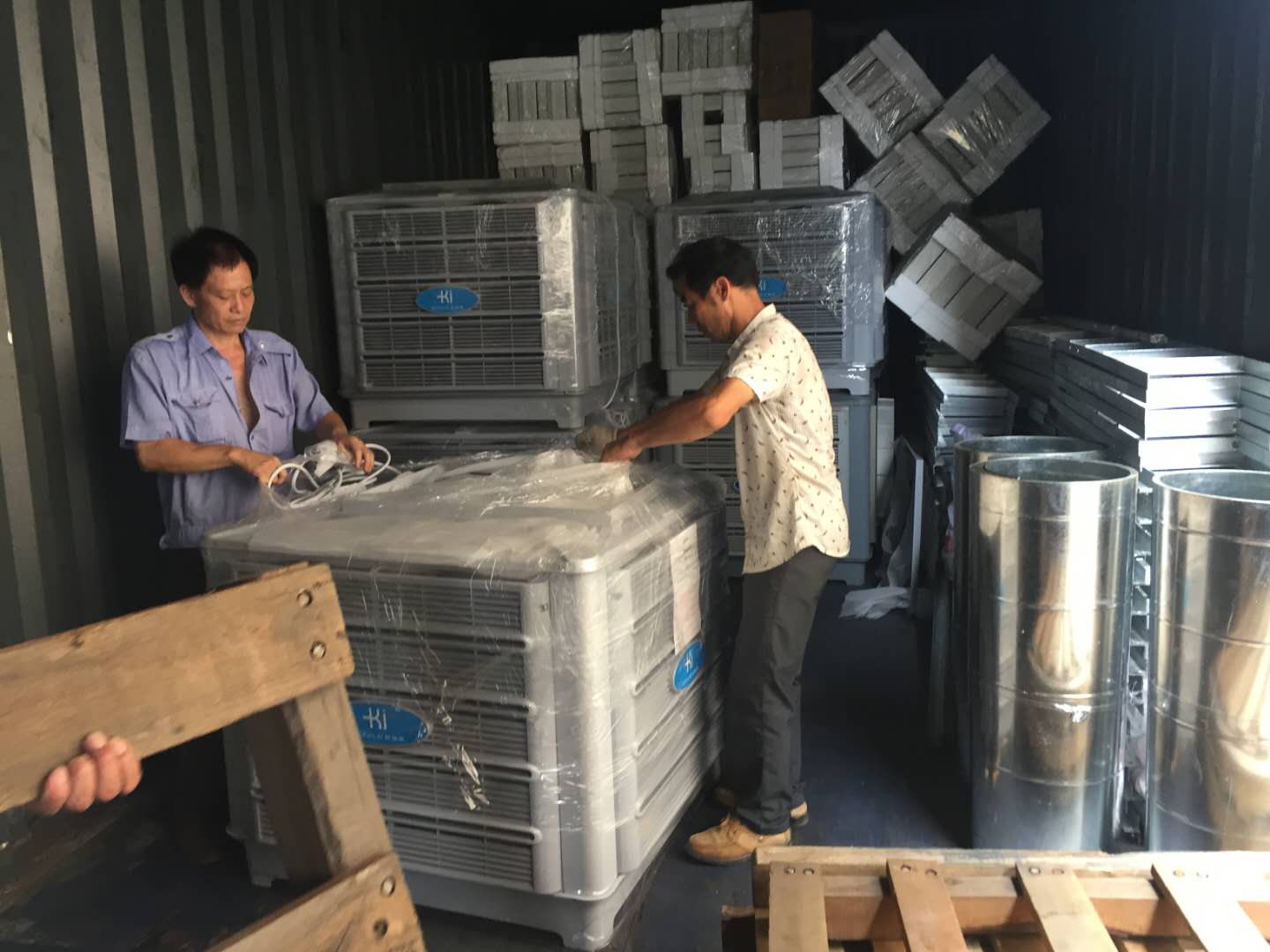 22.5米車(chē)廂整整一車(chē)科瑞萊工業(yè)環(huán)保冷風(fēng)機(jī)空調(diào)KD18機(jī)器整裝待發(fā),謝謝客戶(hù)對(duì)我們科瑞萊品牌的信任與支持。